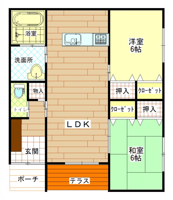 バス・トイレ別 エアコン フローリング 南向き